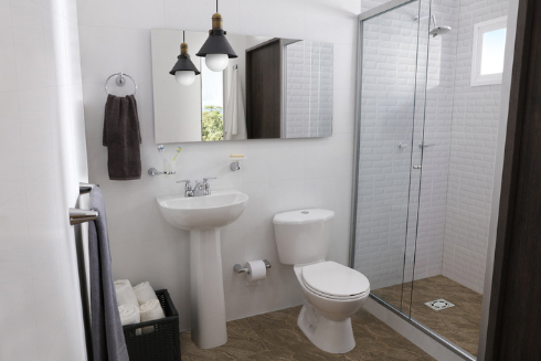 Pared en cerámica plana blanca en formato de 30×60, brillante.