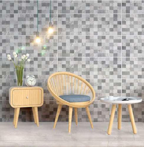 Pared tipo mosaico con mezclas entre estructuras, texturas y tonos que se mezclan alineadamente entre sí para lograr ese toque neutro perfecto para decorar tus ambientes, además su encantador tono gris te transmitirá el equilibrio ideal entre un tono frío y uno cálido.