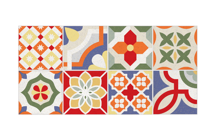 Revestimiento para piso y pared con moderno diseño hidráulico con colores vivos para decorar cualquier ambiente. Uso comercial moderado.