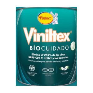 Viniltex Biocuidado elimina el 99.9% de los virus SARS-COV-2 y H1N1 y las bacterias. En materia de protección de la salud, Biocuidado es la pintura más completa del mercado dado que es ultra bajo olor, cero VOC, anti hongos, anti algas, cuenta con certificación Green Guard Gold, y 99.9% antibacterial. Además, una vez aplicada la pintura sobre la pared, la propiedad biocida (eliminación del virus) perdura durante 3 años.